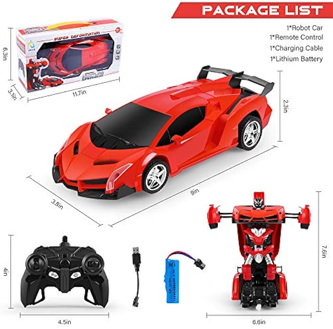 • Perfect Hobby Gift for Kids - Designed for transformer lovers and all kids who love cars, this RC car toy can be used as the best gift choice for Christmas or Birthday. The Rc cars is a perfect toy for boys and girls, keep children busy and fascinated with the transformation, being a hit on the birthday and other holiday parties.