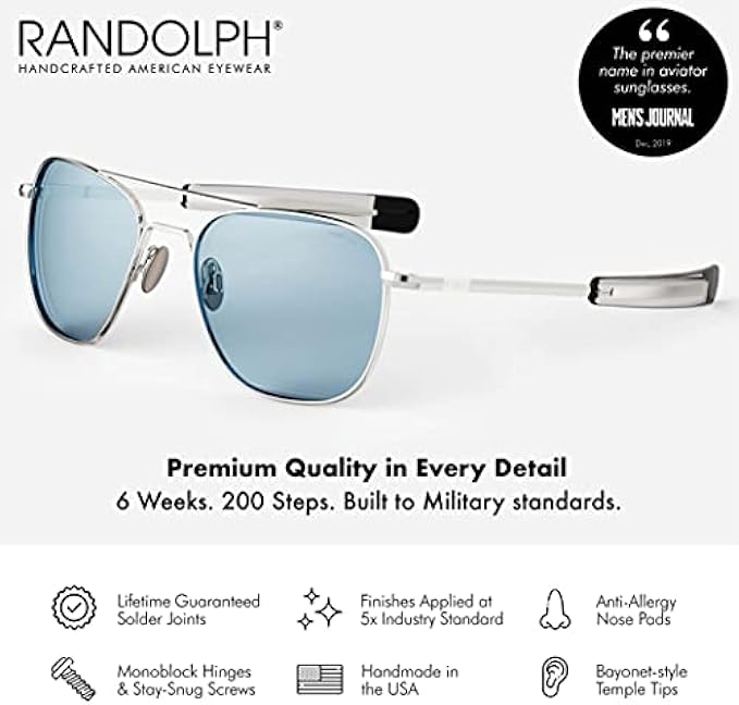 • BRAND HISTORY: Randolph is family-owned and operated, handcrafting the finest eyewear with top-grade materials and relentless attention to detail and quality since 1973.