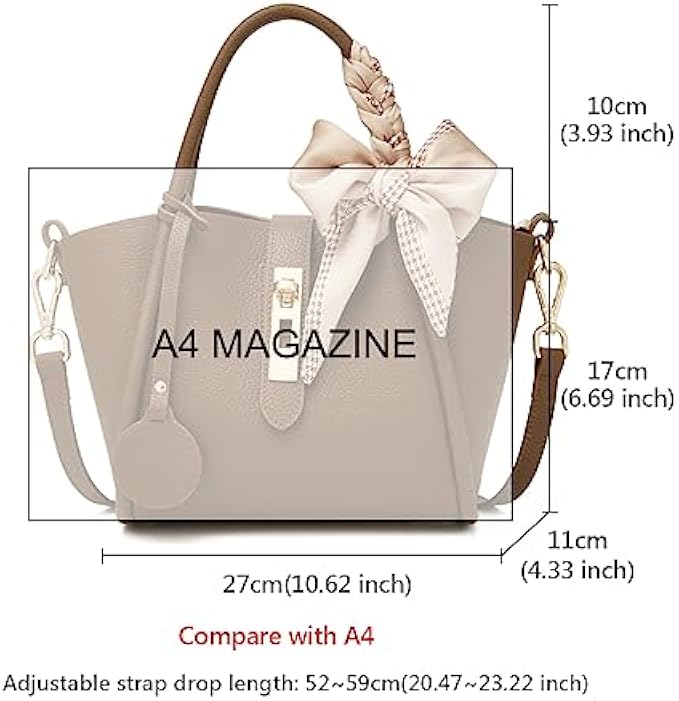• 【Suitable size of handbag】L 27cm x W 11cm x H 17cm (10.62inch x 4.33inch x 6.69inch).This shoulder bag for women features adjustable long shoulder strap (20.47 inch minimum or 23.22inch maximum in drop length), the style and size are very fashionable and never out of date.