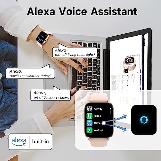 • 【Alexa Built-in Watch & Smart Notification】This fitness tracker with Alexa voice assistant,log into Alexa in "Veryfit" app and connect this smart watch,you can check news,weather,set timers,alarm clocks or wake up other Alexa devices.This android smartwatch will also ring and vibrate when there is message notification such as Facebook,Instagram,Twitter,WhatsApp messages.