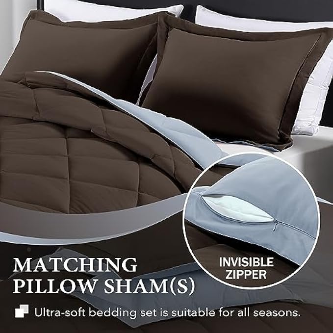 downluxe Queen Comforter Set - Brown and Blue Queen Comforter, Soft Bedding Comforter Sets for All Seasons, Queen Bed Comforter Set - 3 Pieces - 1 Comforter (88"x92") and 2 Pillow Shams(20"x26")