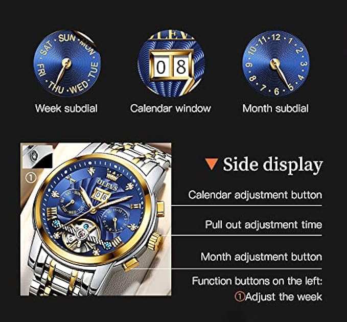 OLEVS Automatic Watches for Men Diamond Skeleton Mechanical Tourbillon Self Winding Luxury Dress Wrist Watches Calendar Luminous Waterproof