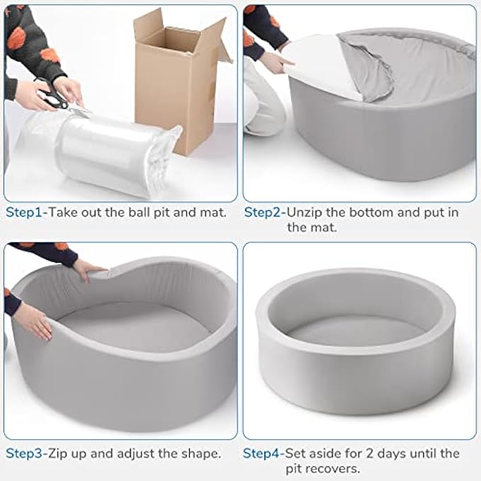 • 【EASY TO CLEAN & SET UP】 The firm foam walls and floor are enclosed in a removable cotton cover that is safe to put it in the washer and dryer. You don't need to inflate this ball pit because it comes with a memory foam that will automatically get it back to its regular shape.