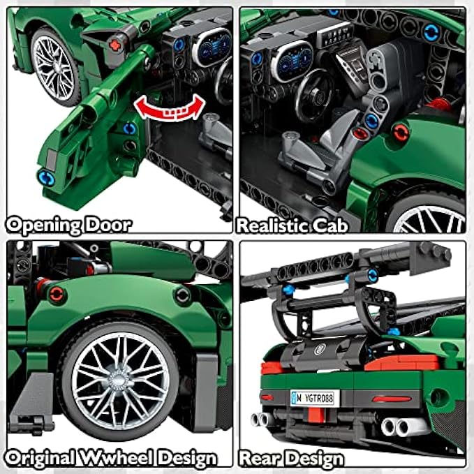 • 【Creative Design】This supercar building block sets have a smooth lines and creative design, the classic green shape makes this sports car more attractive. Both sides of the door can be opened, the wheels use the original plating design, these realistic details of the design of this block sports car to add a sense of reality.