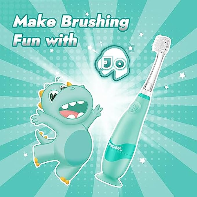 Papablic Toddler Sonic Electric Toothbrush for Ages 1-3 Years, Baby Electric Toothbrush with Cute Dino Cover and Smart LED Timer, 2 Brush Heads (Jo)