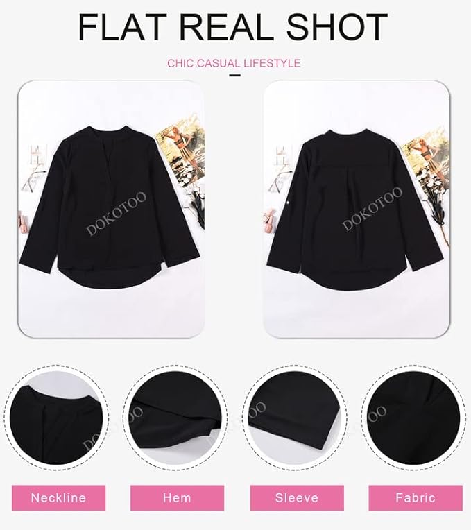 Dokotoo 2023 Womens Summer 3 4 Bell Sleeve/Short Sleeve V Neck Chiffon Tops Casual Solid Tops and Blouses Loose Shirts S-XXL