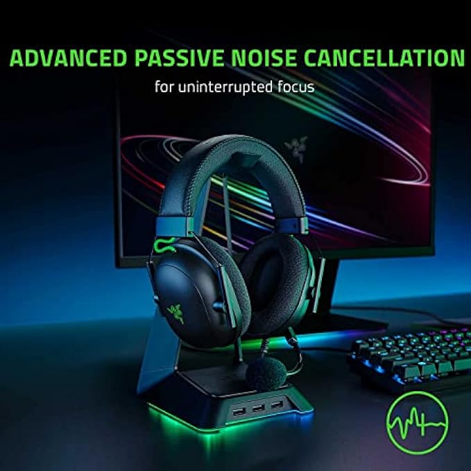 Razer BlackShark V2 Gaming Headset: THX 7.1 Spatial Surround Sound - 50mm Drivers - Detachable Mic - PC, PS4, PS5, Switch - 3.5 mm Audio Jack & USB DAC - Black