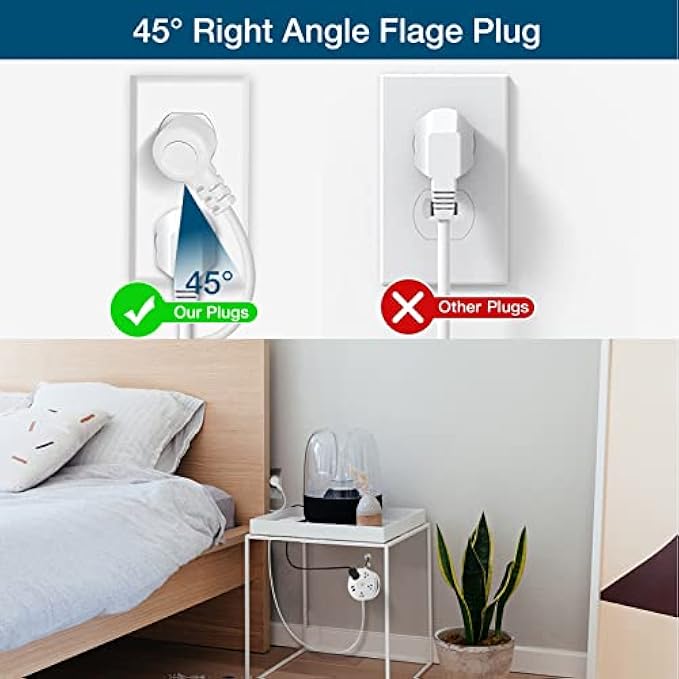 • ✔️Flat Plug & Detachable Hook-- The flat plug features a low profile fits easily in tight spaces, and the 45 degrees angled plug to keep other outlets vacant. And we provide a detachable hook that you can hang the portable charging station on the wall. Ideal for travel and for some crowded spaces at home or in the office