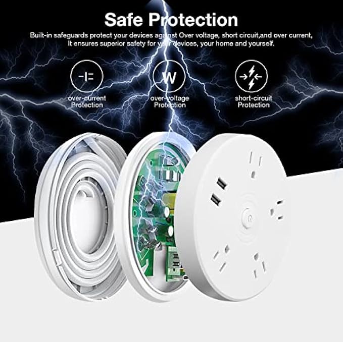 • ✔️Overload Protection-- The travel power strip is FCC approved, When the rated power is exceeded, the switch will automatically shutoff to keeps your device safe. With high temp fireshield outer shell ensuring complete protection against electrical short circuit, over heat, over charging, over current and over voltage, safeguards your expensive computers, TV, and all other electronic devices from overload