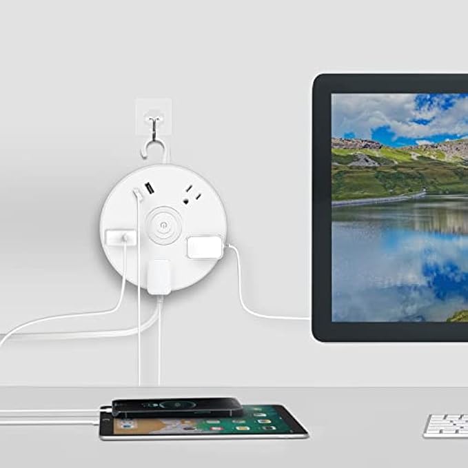 • ✔️Flat Plug & Detachable Hook-- The flat plug features a low profile fits easily in tight spaces, and the 45 degrees angled plug to keep other outlets vacant. And we provide a detachable hook that you can hang the portable charging station on the wall. Ideal for travel and for some crowded spaces at home or in the office