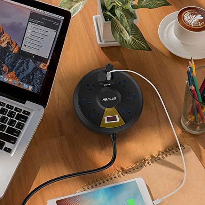 • Circular Design & Wide Spaced Outlets extender: This extension cord has a round design with 1.5 inches of space between each AC outlet to accommodate large adapters.