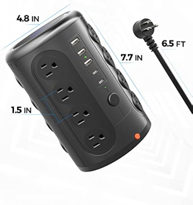 • 【21 in 1 Power Strip Tower】 With 16 AC outlets 3 USB-A ports and 2 USB-C ports, TenTrend outlet tower can simultaneously charge for 21 electric devices.