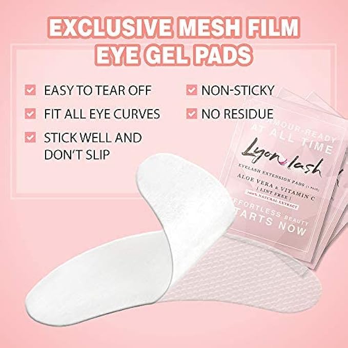 100 Pairs Eyelash Extension Under Eye Gel Pads by Lyon Lash - Lint Free with Aloe Vera Hydrogel Eye Patches, Premium Eyelash Extension Supplies & Beauty Tools, Fit Most Eye Shape, Stick Well