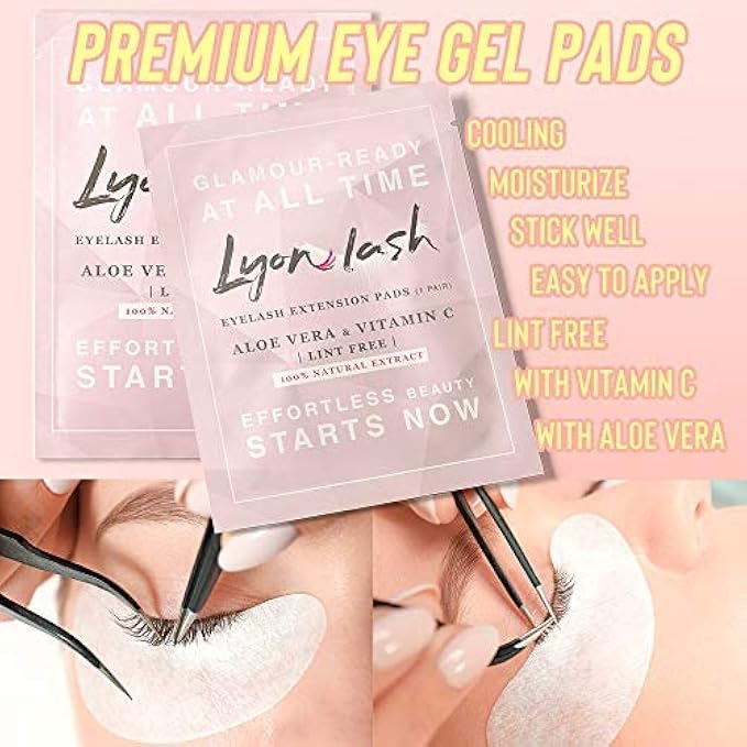 100 Pairs Eyelash Extension Under Eye Gel Pads by Lyon Lash - Lint Free with Aloe Vera Hydrogel Eye Patches, Premium Eyelash Extension Supplies & Beauty Tools, Fit Most Eye Shape, Stick Well