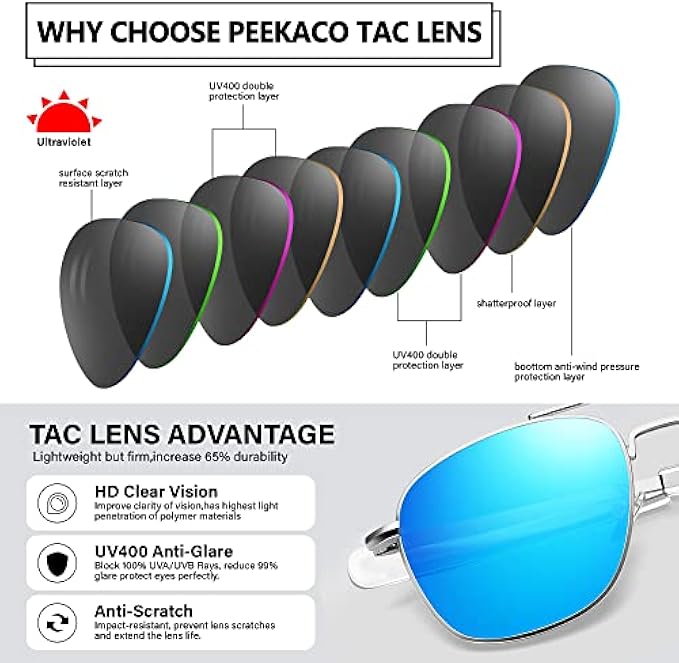 • ★MILITARY AVIATOR SUNGLASSES★- The hottest trends are coming your way this summer. With its unique double bridge design, the aviator glasses have a super fashionable appearance, a classic metal frame, a dazzling metallic luster appearance, and TAC polarized lenses to provide you with UV400 professional-level sun protection.