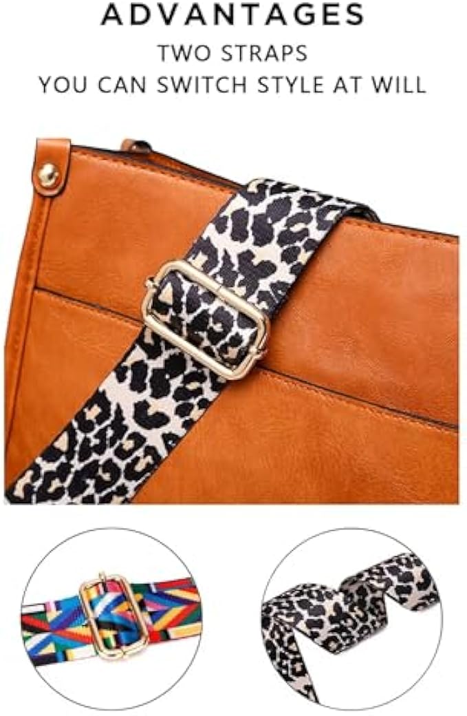 • ❤️【2-Pack Adjustable Guitar Straps】This crossbody handbags for women is equipped with 2 wide adjustable straps: 1 leopard strap + 1 rainbow strap, gold metal clip attachments, easily to be clipped to any womens crossbody bag. Using the most popular two guitar straps design and you can replace it.