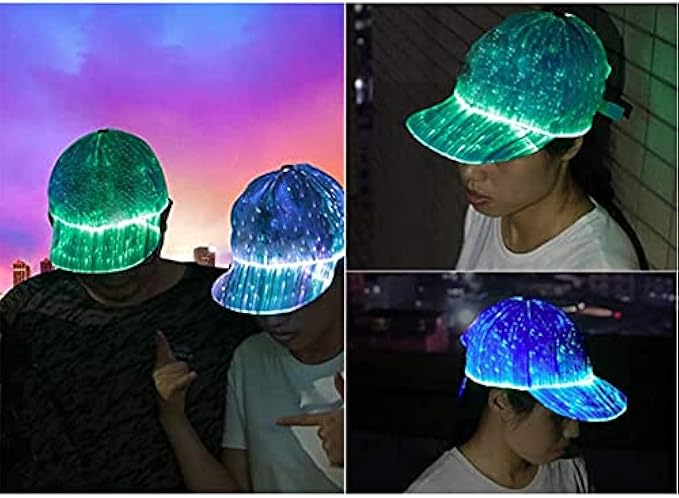 HUNRUY Hip Hop Luminous LED Baseball Cap Hats for Christmas Rave with 7 Colors Light USB Charging