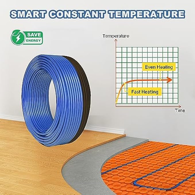 • Enjoy Warmth of Floor Heating Cable: Designed for ultimate comfort and the luxury of living, this floor heat wire uses 3.7w/ft heater cable , a powerful electric floor heating system to provide quick and long-lasting heating to your floors throughout the chilliest days.