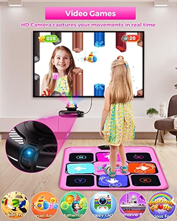 Dance Mat for TV, Electronic Dance Mat Games Toy Gift for Kids Girls Boys Adults, Dance Pad Built-in Variety of Music Challenges / HD Camera Games / Controller Games / Yoga Tutorials and Running Modes