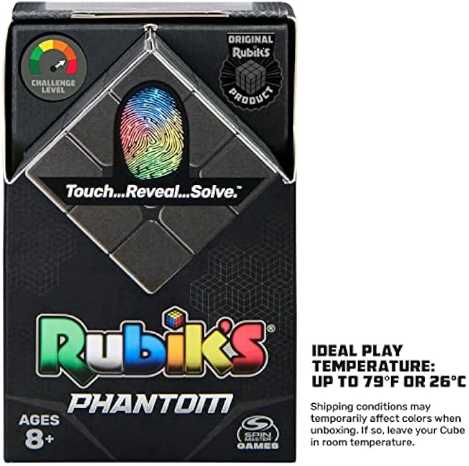 • RUBIK’S PHANTOM: Innovation adds a new layer of challenge to the 3x3 Cube. Touch the Cube tiles to temporarily reveal color. Solve the latest Cube, the Phantom, as the colors fade in and out through the heat of your touch.