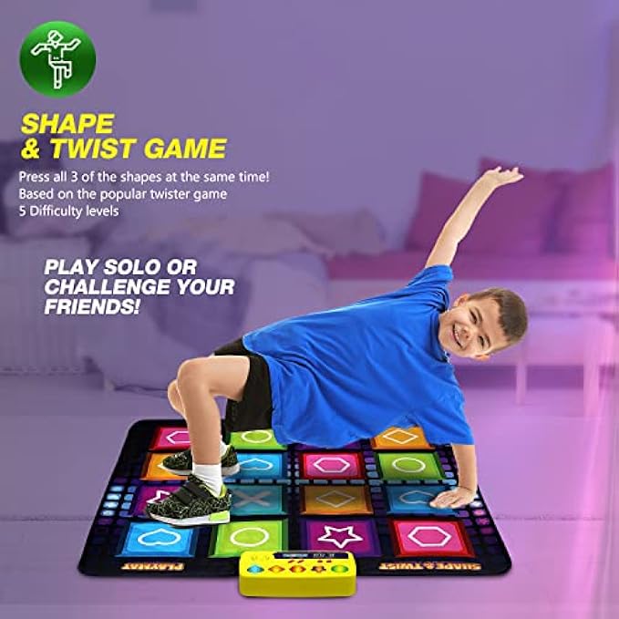 • 3 FUN SHAPE ARCADE GAMES - Get your kids to work out in the most entertaining way! This light-up dance mat features 3 interactive shape games with 5 difficulty levels. Educational shape games that will teach shapes matching, fine motor skills, brain & body coordination.