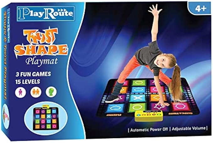• UNIQUE DANCE MAT - Improve your kids' fitness levels, coordination, and interaction with PlayRoute's Shape and Twist Play Mat! Alone or with a friend, they will enjoy grooving to the music along with 3 exciting games (15 levels): Match The Shape, Shape & Twist, and Memory Game