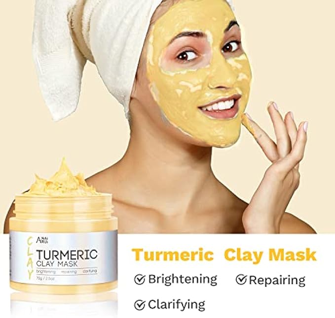 • TURMERIC CLAY MASK -- Turmeric face mask boost radiance, help achieve more even complexions, improve uneven skin tone, skin texture, and nourish.Purify pores, cleansing pores, correct pigmentation. ANAI RUI Turmeric clay mask gives you a deeply hydrating and supple, plump, radiant look after use.
