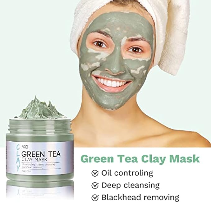 • GREEN TEA CLAY MASK -- Green tea has been a proven natural antioxidant and active in skincare. Green tea clay mud mask helps protect the skin and unblocks pores. Combat excess oil, and pores are tightened. It leaves skin feeling soft, refreshed, and perfectly hydrated.