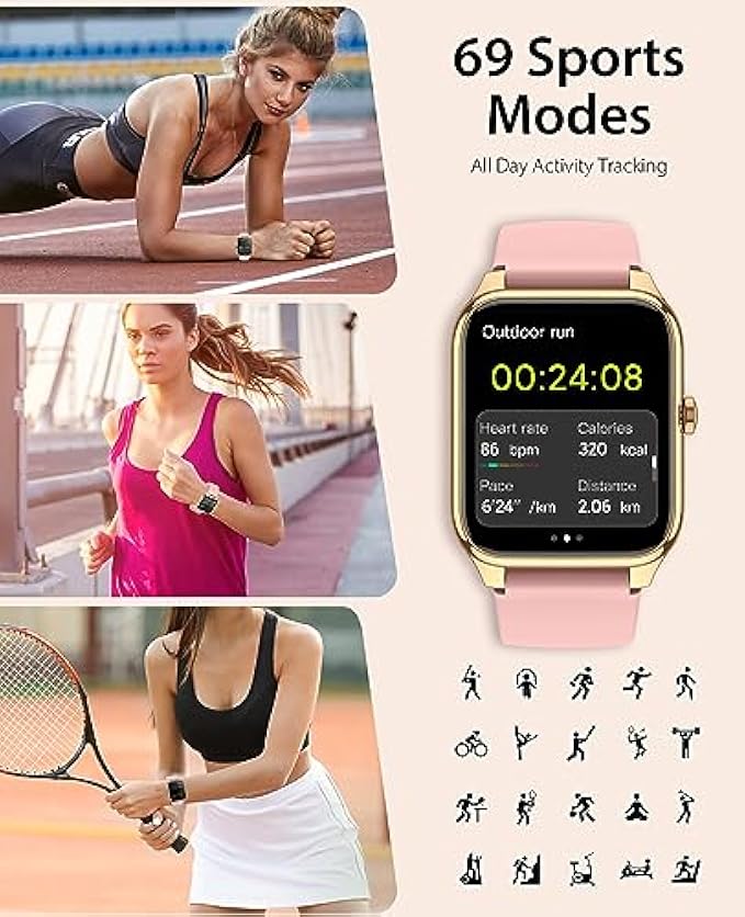• 【Activity Fitness Trackers】Smart watches comes with 69 sport modes including walking, running, climbing, cycling, basketball, etc. It uses smart exercise data analysis to track your exercise time, heart rate, calories, steps, distance and speed in real time. Record data while exercising to get a clearer picture of your fitness trajectory. You can also view the workout data in the APP for any time.