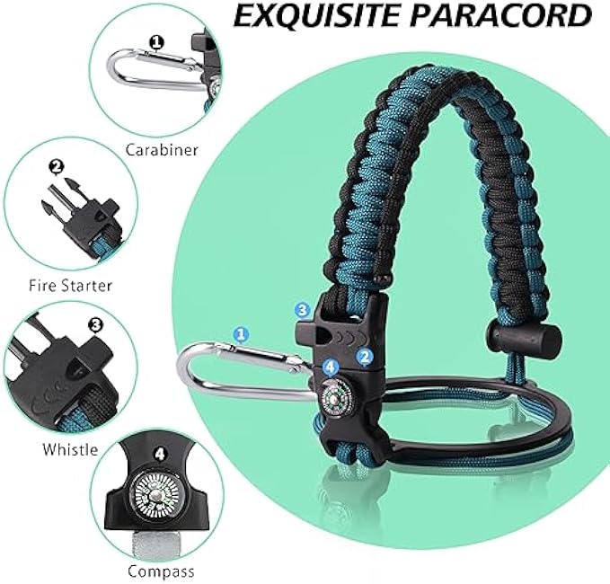 • 【Distinct Fashion Paracord & Protective Boot】 Designed with a detachable paracord handle that matches the color of the water flask, this handle is made of high-quality military-grade nylon and features a compass, safety ring, carabiner, flint fire starter, and whistle. It serves as an ideal survival kit for expeditions in the wild.The protective silicone boot helps to prevent dents, scratches, and other imperfections on the bottom of your bottle.