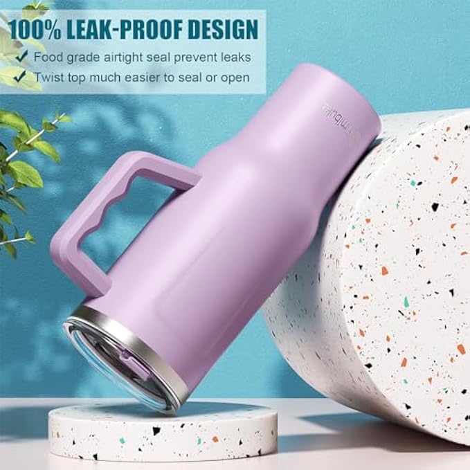 • UPGRADED HUMANIZED DESIGNS: Adopt durable structure of the Thick screw lid & airtight silicon seal make sure 100% leak-proof while enhances the sealing and heat preservation performance of the lid, you do not need to worry about accidentally tipping the cup. The multifunctional screw lid that offering you with three way to drink, you can drink it through straw, sip and eventually using open cup. Comes with huge comfortable handle is easy to grip and carry for small up to extra large hand sizes.