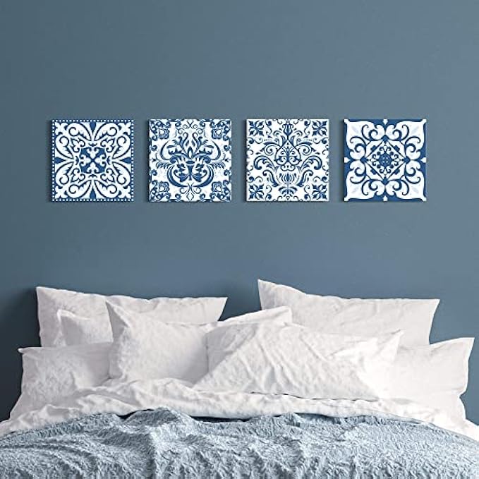 • NAVY BLUE WALL DECOR: The mandala canvas wall art is 12 x 12 x 4 Pcs,package include a metal hook and nails accessories,ready to hang.Ideal size for leveling up senses of any interior spaces