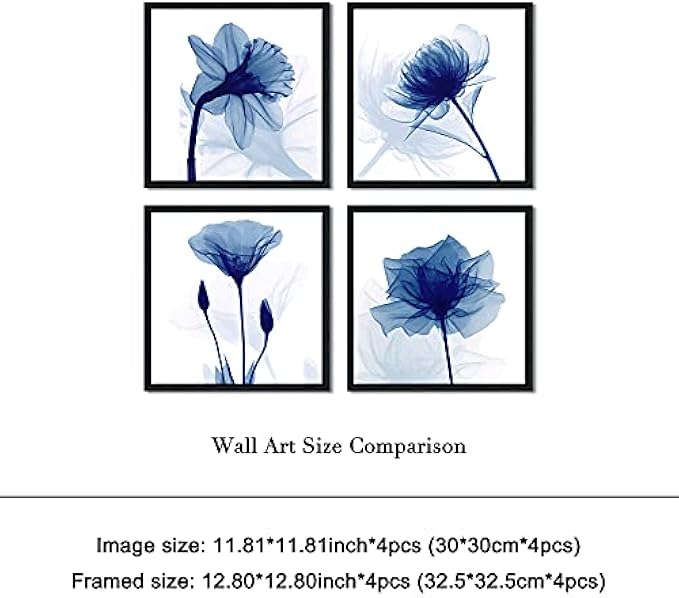 • Art image Size:12 in x 12 in x 4pcs.</p><p>Finished Framed Size: 12.8 in x 12.8 in x 4pcs,1.3inch/pc thick.