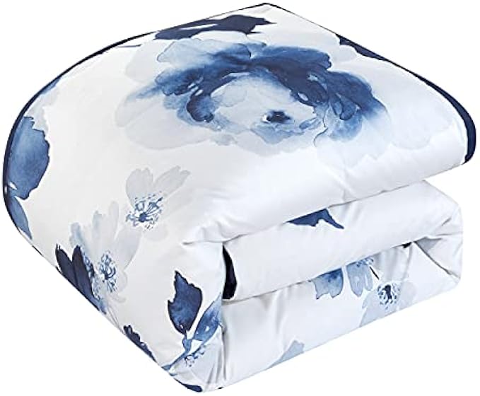 • FLORAL PRINT - Beautiful large scale floral print on a white background with a solid navy color backing - Design coordinated shams and deco pillows included