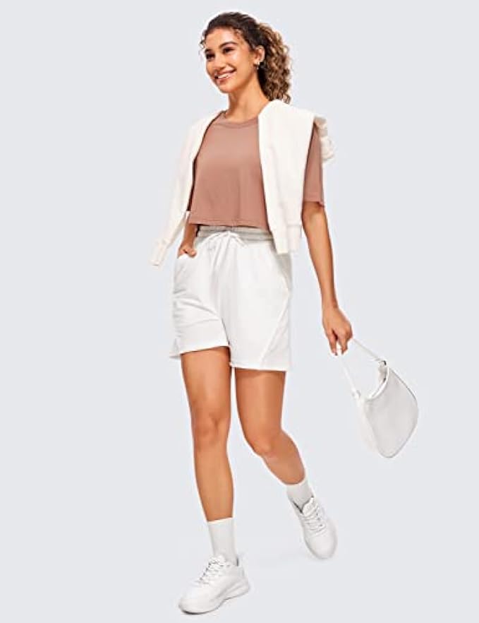 CRZ YOGA Women's Pima Cotton Workout Crop Tops Short Sleeve Yoga Shirts Casual Athletic Running T-Shirts