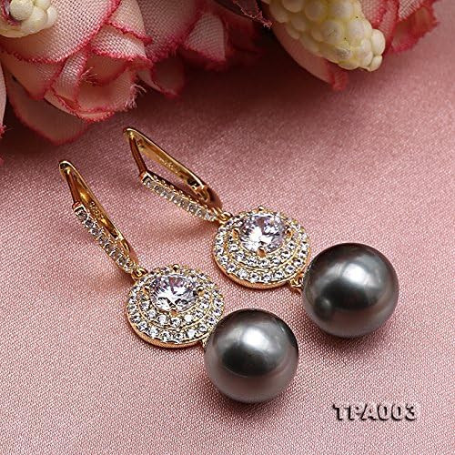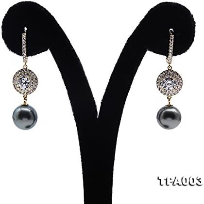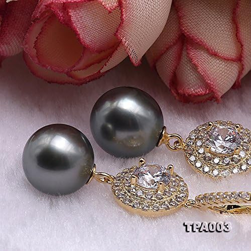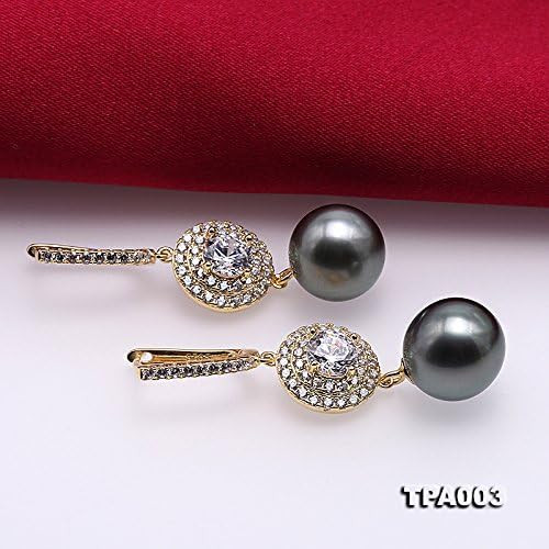 JYX Pearl Sterling Silver Drop Earrings AAA Quality 9.5 mm Round Black Tahitian Cultured Pearl Dangle Earrings with Spakling Zircon-inlaid