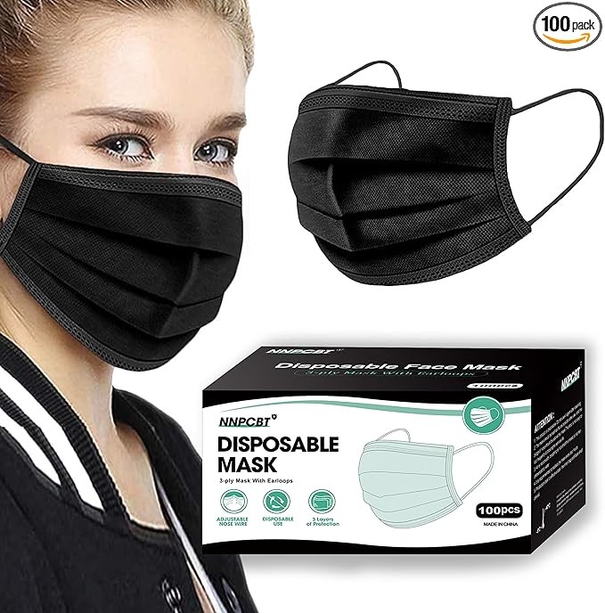 NNPCBT 100PCS 3-layer black disposable face mask filter protective mask